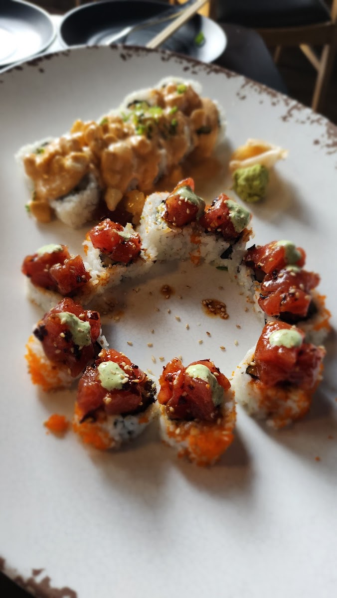 We came here to celebrate our anniversary, and from start to finish, everything exceeded our expectations. To kick off the evening, we ordered the yellowtail sashimi, lump crab cakes, and Diablo shrimp—all of which were absolutely fantastic. Each appetizer was fresh, flavorful, and beautifully plated. For our main course, we chose the High Roller Sushi Combo, which included the ID Roll, Volcano Roll, and Nirvana Roll. Every bite was packed with flavor and creativity—we were so eager to dig in, we forgot to take a picture first (always a good sign)! We ended the meal on a sweet note with the chocolate gateau, which was rich, decadent, and the perfect finish to an already outstanding meal. We were seated right away with our reservation, the service was prompt and attentive, and the evening views of downtown added a special touch to the whole experience. Highly recommend for a romantic date night or even a casual night out—you won’t be disappointed!